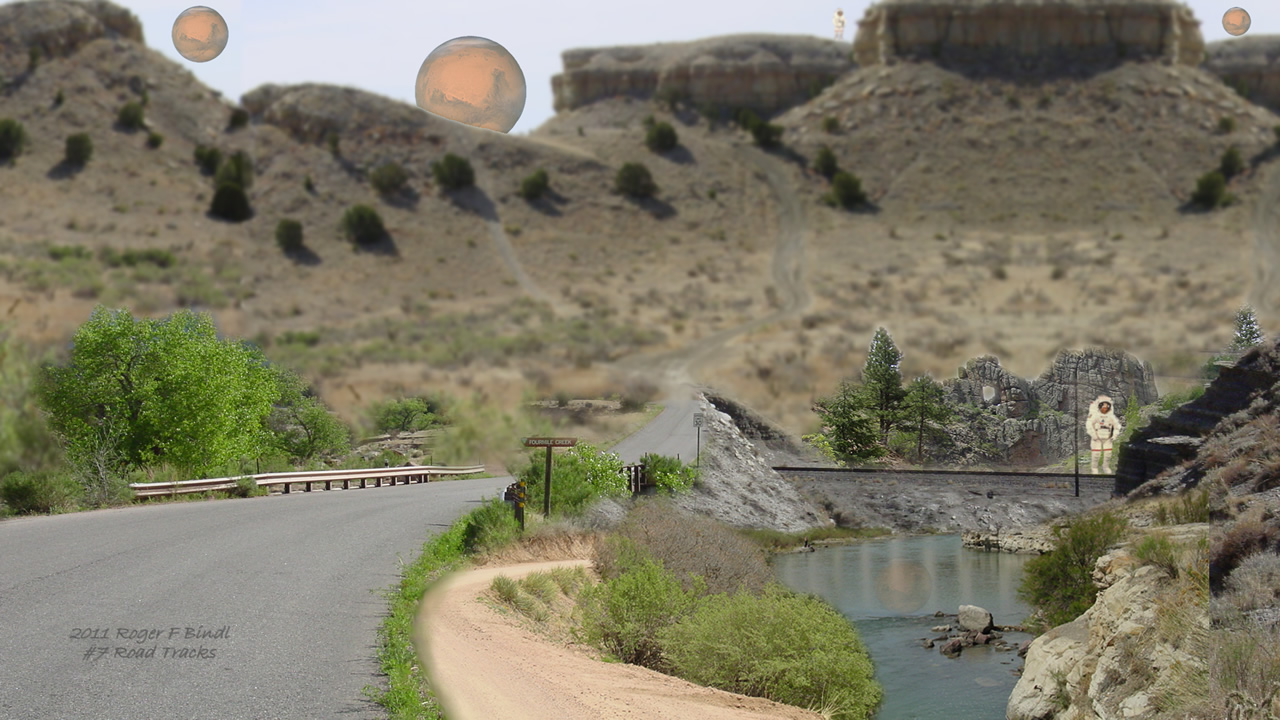 FAADAY8 – I don’t see Mars on the Virgin Galactic trip schedule. May have to look for another space ship. I may need to think outside the box. Could possibly take lesson from the old man in “Up” but use those new space material balloons instead of rubber. Whatever the case, in addition to preparing more collages I need to consider training. Will work on cold weather survival this winter. “Road Tracks” uploaded today. |