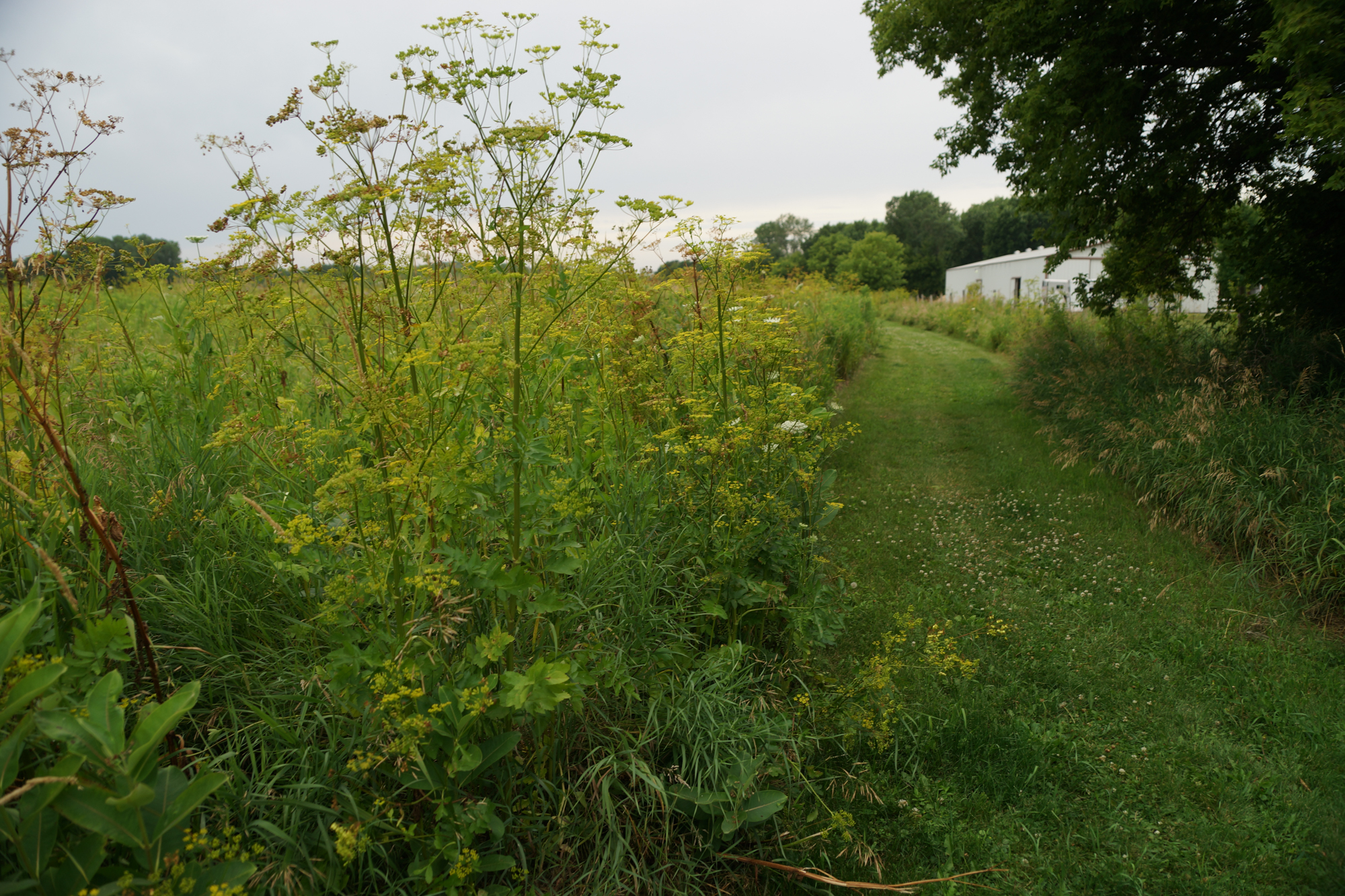 Photo’s of wild parsnip from around Wauankee and Westport. Details for identifying in 1st photo… Deeply ridged stem, compound leaves, umbrella shaped flowers, will grow well over 4 foot tall, and they love sun.